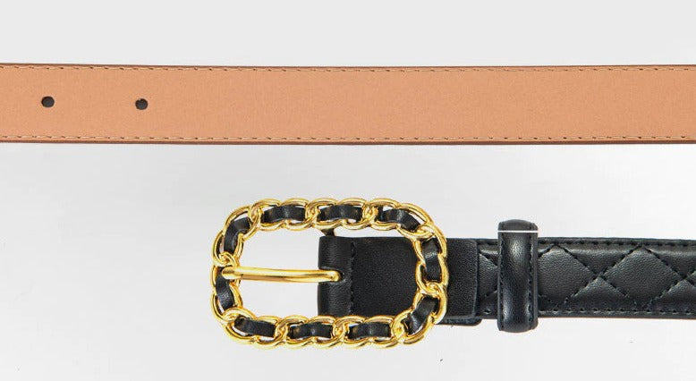 Black & Gold Chain Buckle Belt