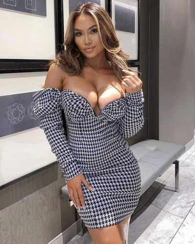 Tweed Black & White Gold Button Off The Shoulder Sweater