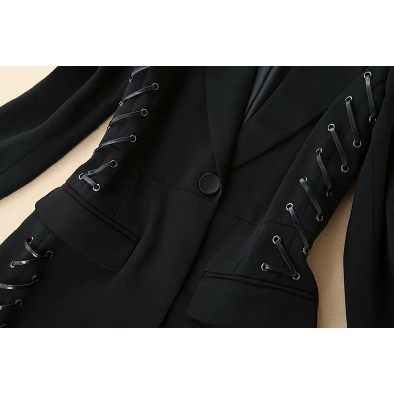 Shop our Brand New Gorgeous Lace Up Black Blazer! This can be worn alone or as a mini dress! Runs Small, Order a size up!