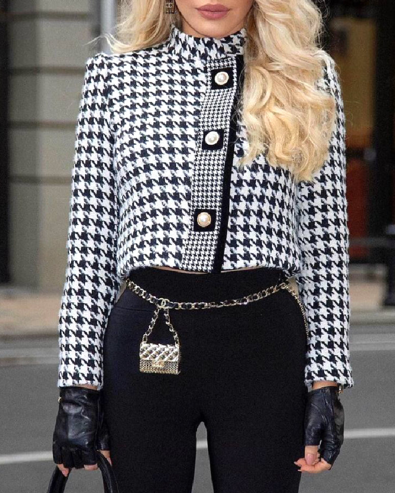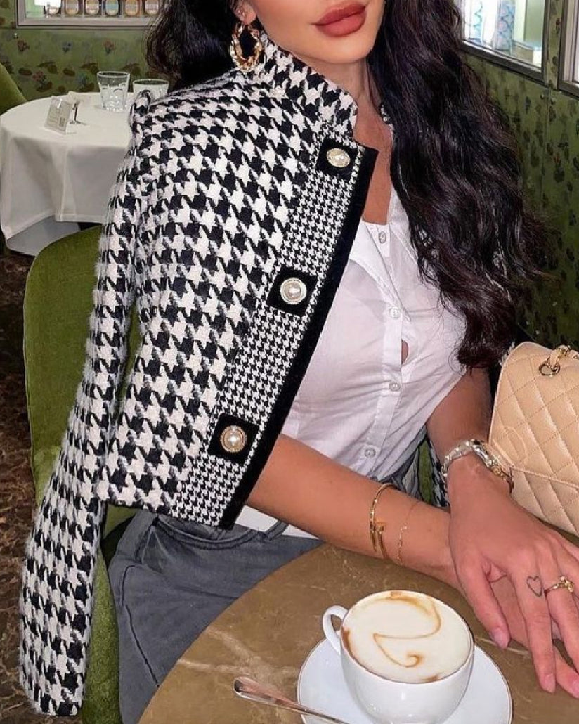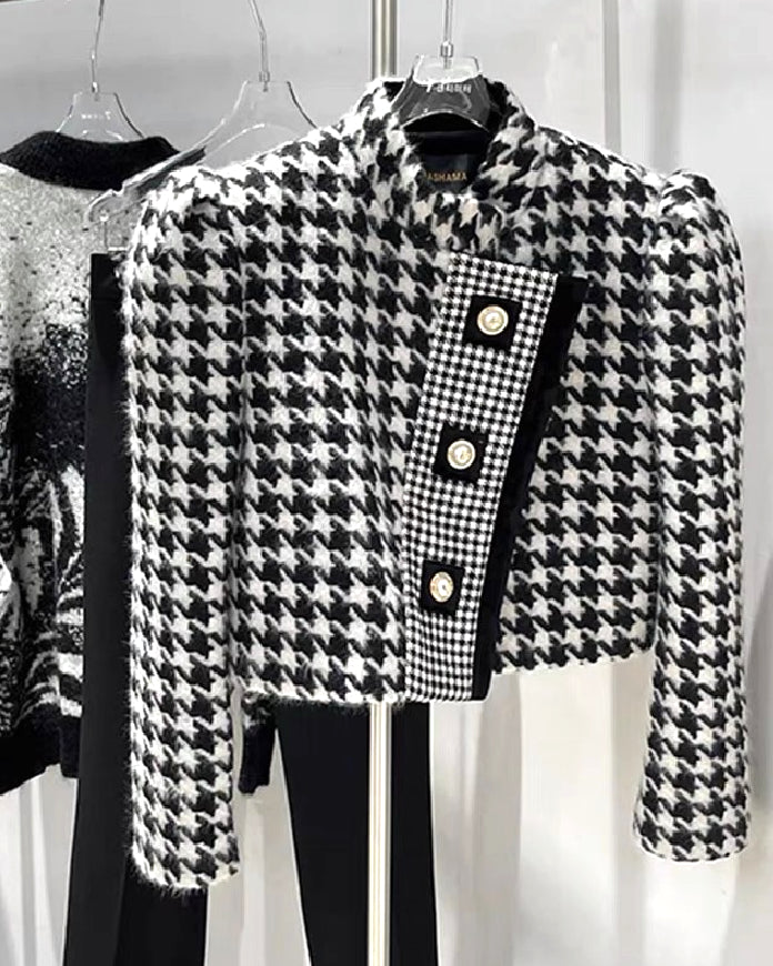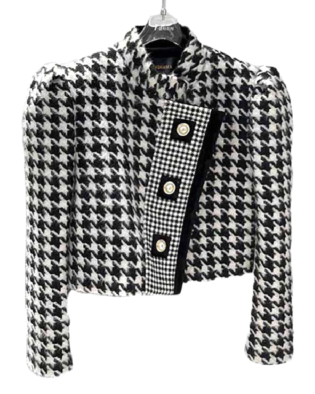 Houndstooth Tweed Cropped Jacket