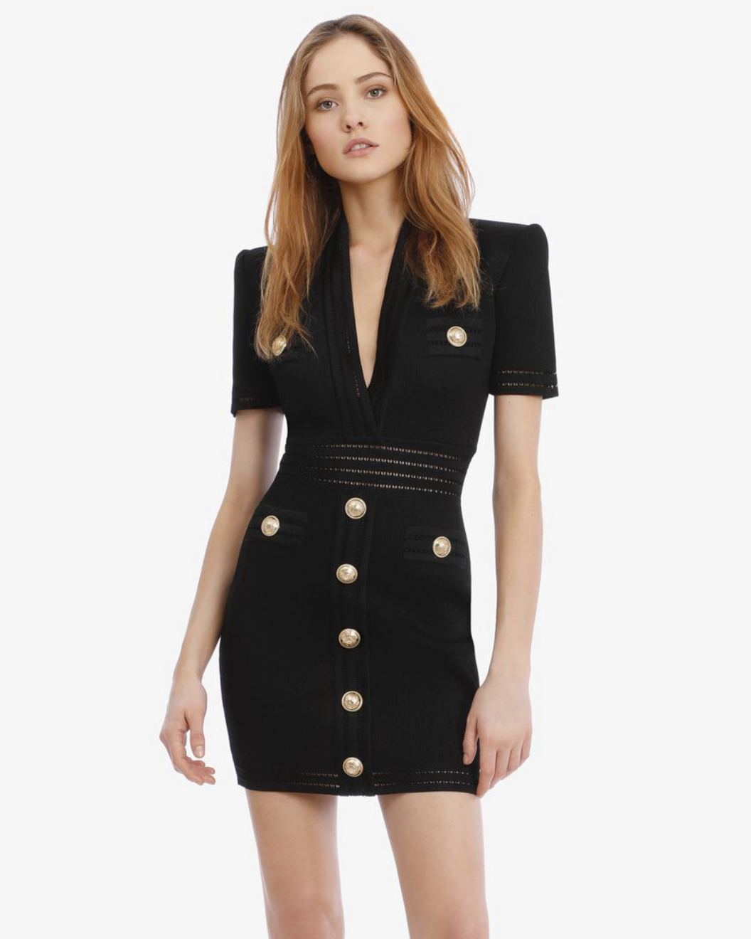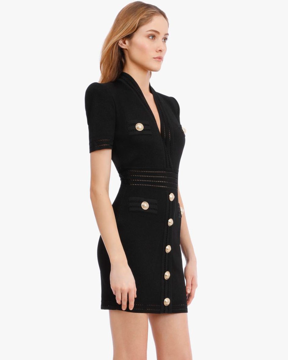 Knit Bodice Features Gorgeous Gold Button Embellishments