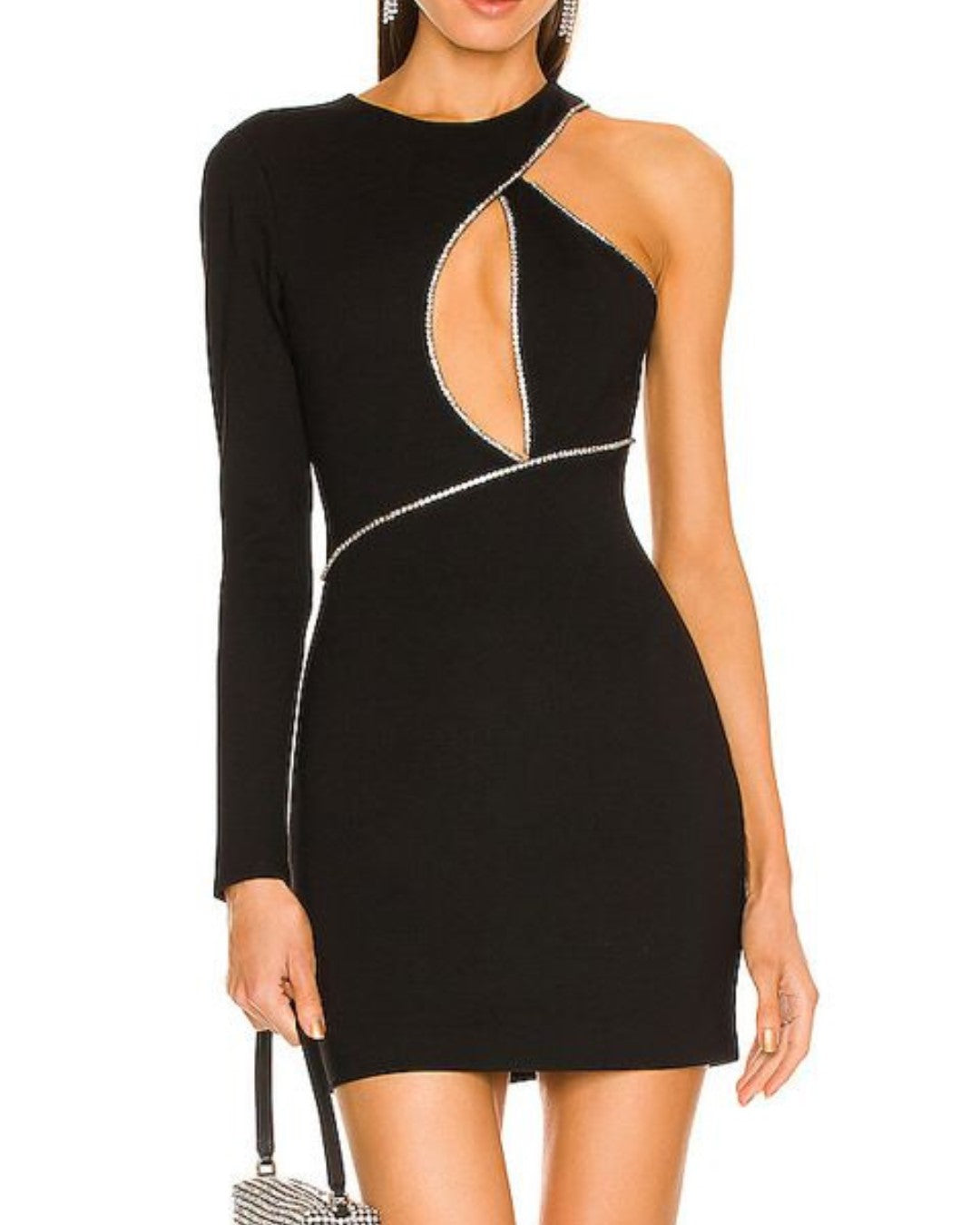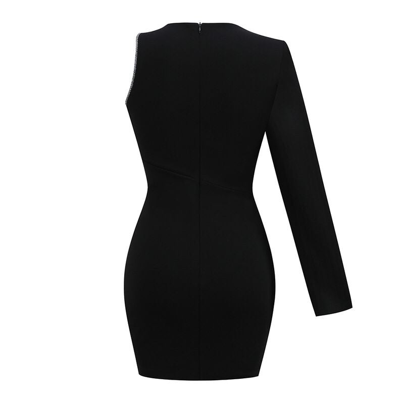Black One Shoulder Crystal Embellished Mini Dress