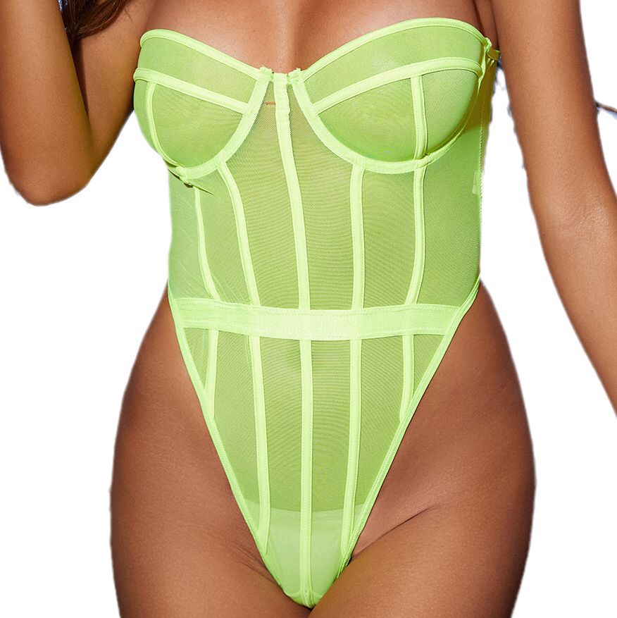 Strapless Sheer Tulle Lined Mesh Bodysuit