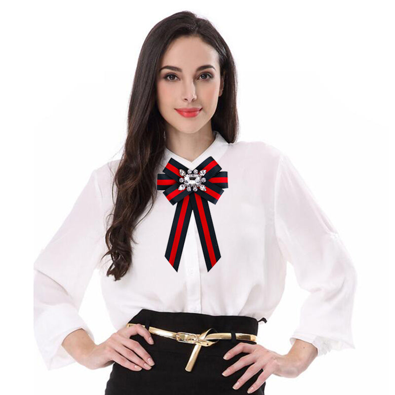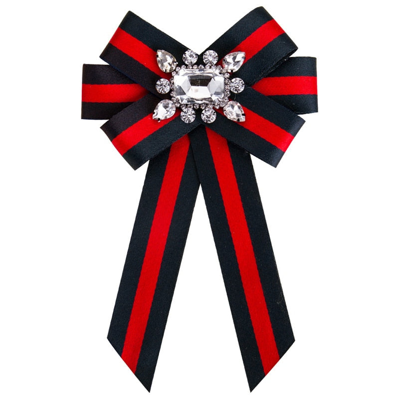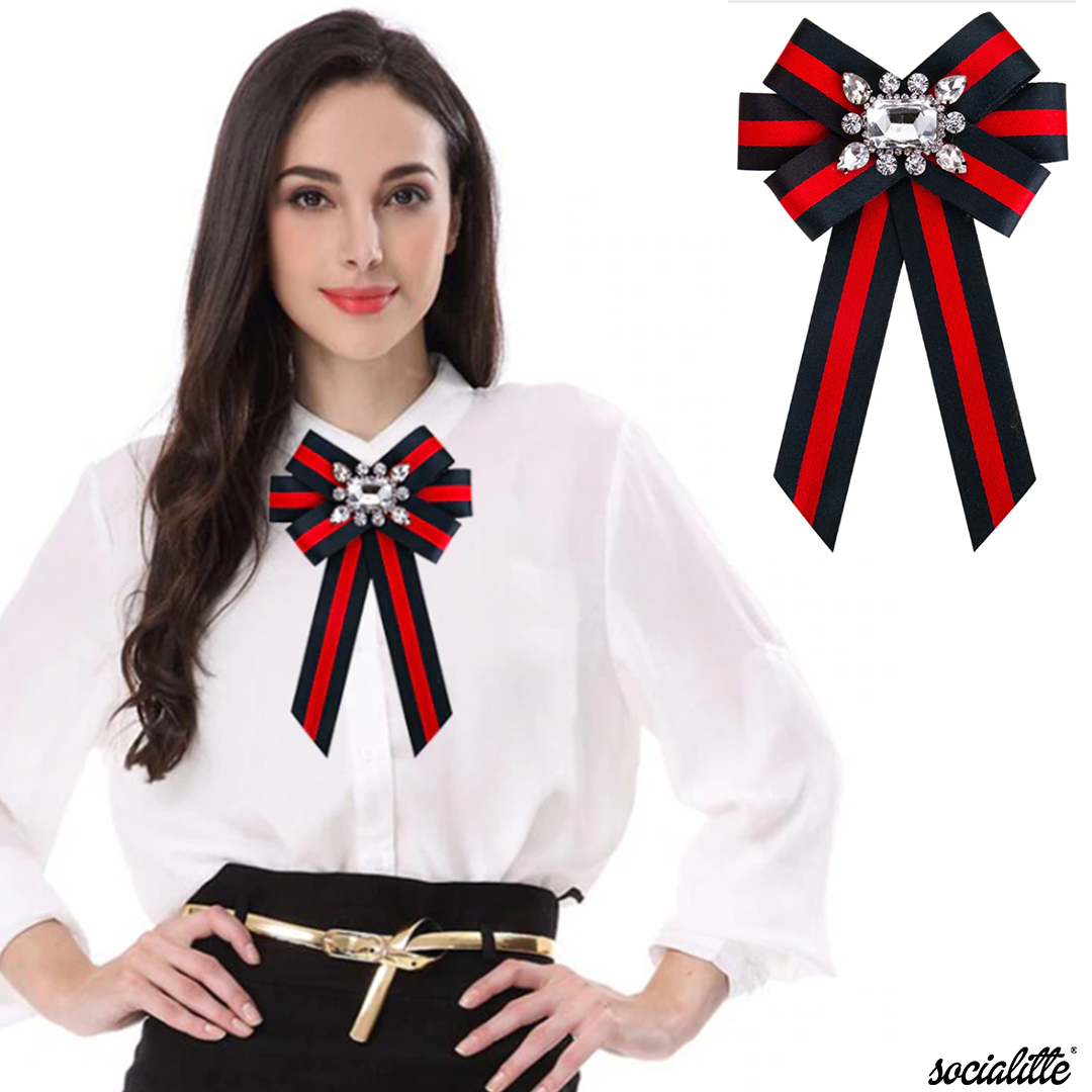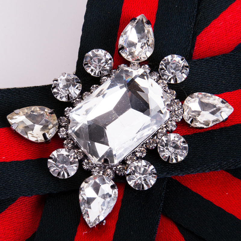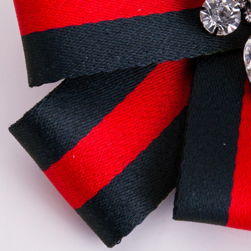 Features our Gorgeous Red and Black Striped Ribbon with Crystal Embellishment in the center of the Brooch. "Gucci" Inspired. Limited Edition.