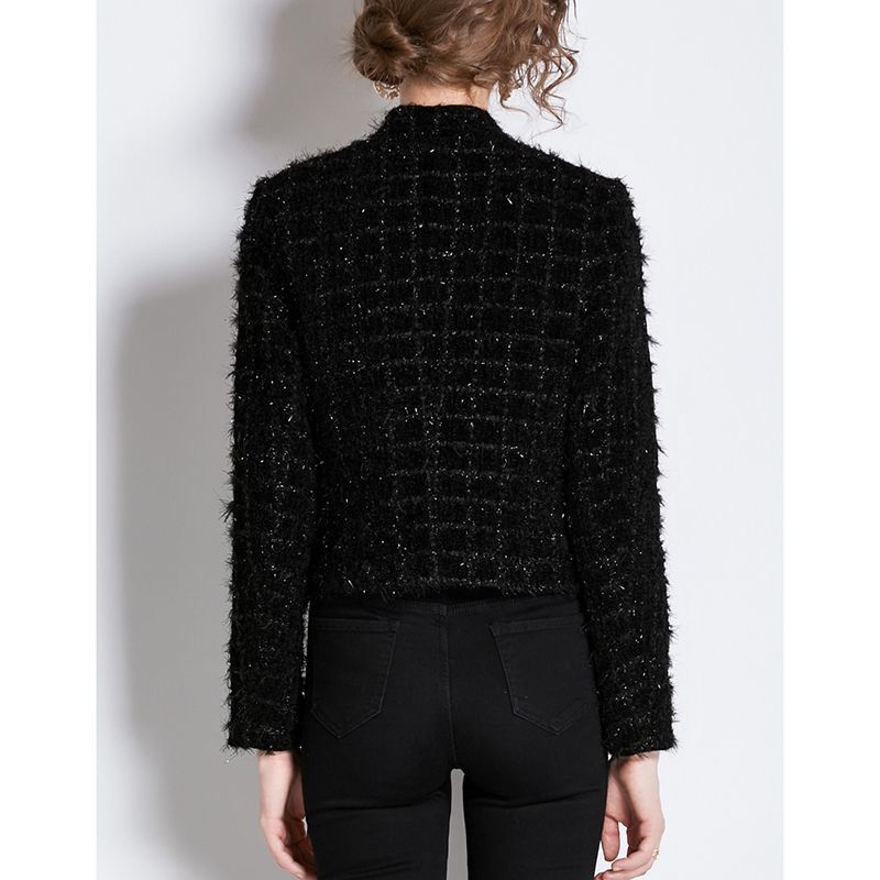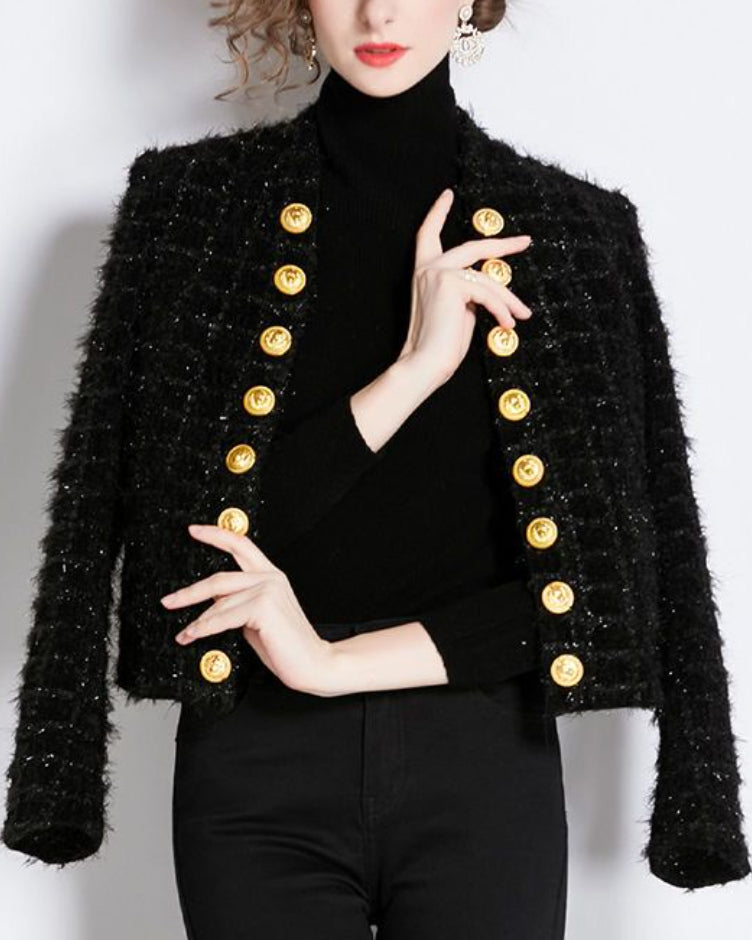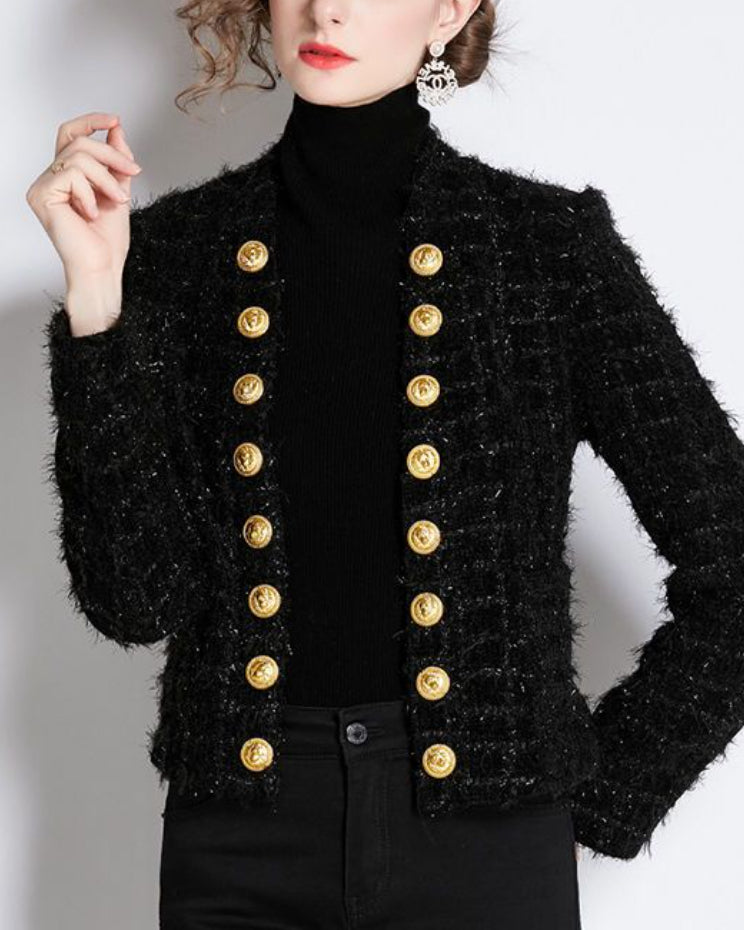 Black Ribbed Tweed Gold Button Jacket