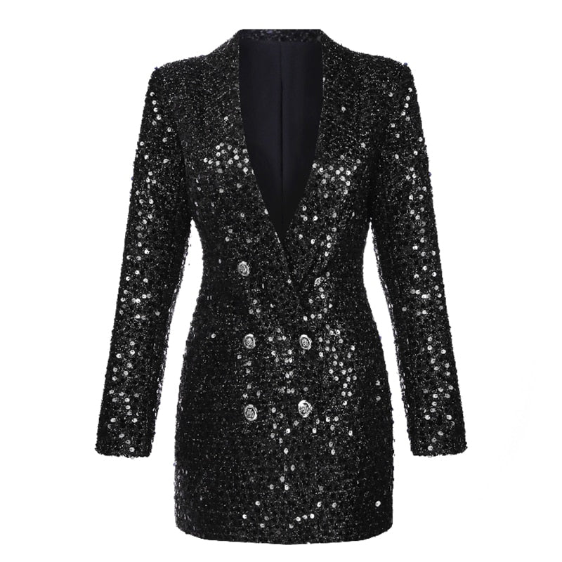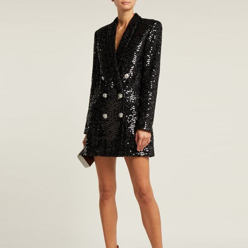 Runway Black Sequin Blazer Dress